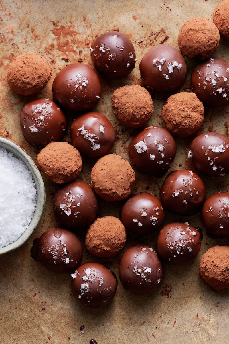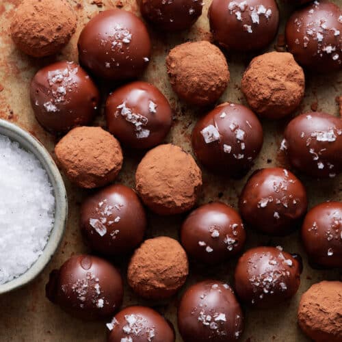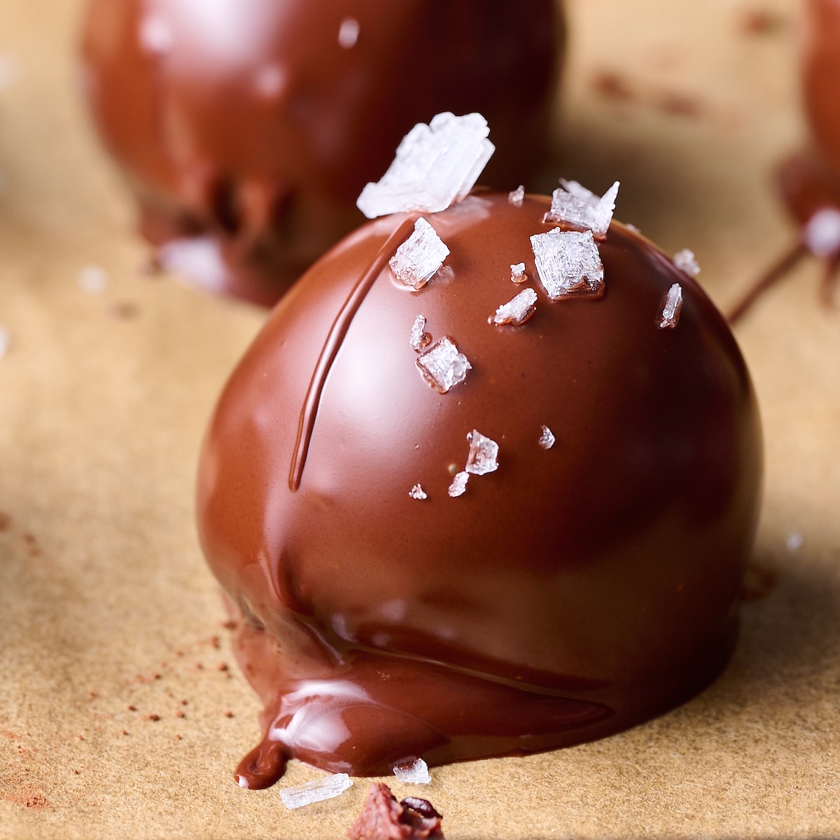 - Sprinkle the top of each truffle with a little bit of the crushed flaky sea salt.