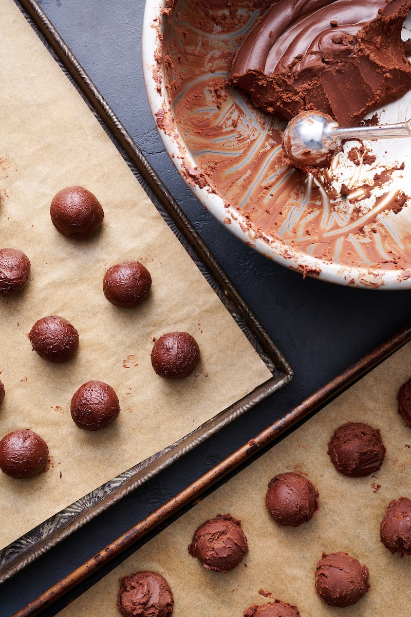 - Before you begin, make sure you have enough room in your refrigerator for both baking sheets, as the truffles must chill again before being dipped in the chocolate coating.