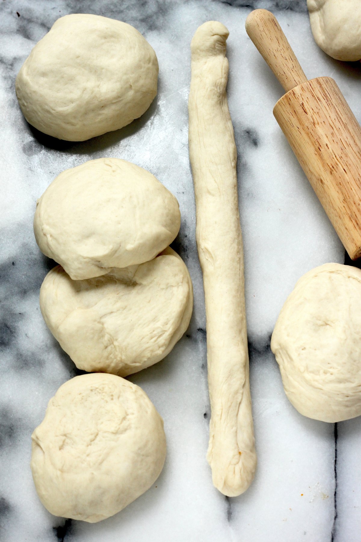 - Divide dough into 8 equal rounds.