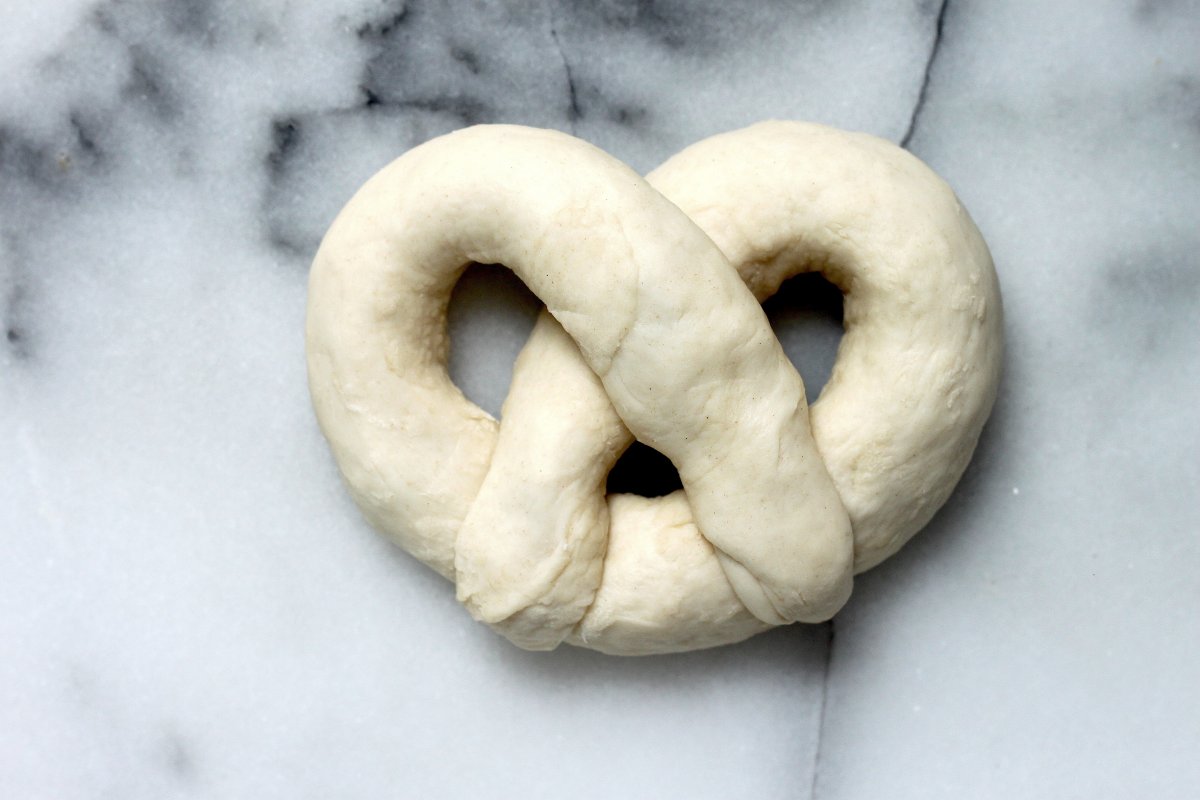 - Make a U shape with each rope of dough, holding the ends.