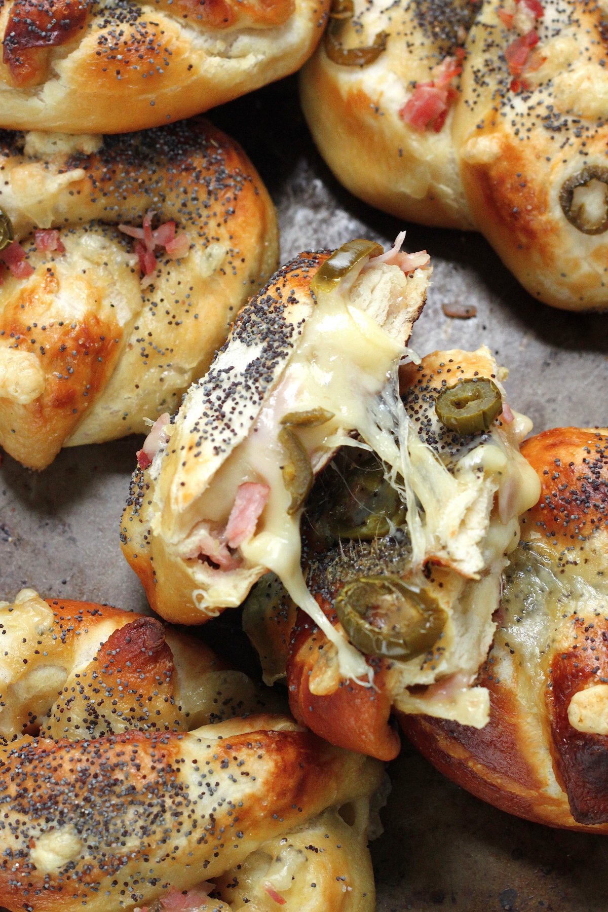 Ham, Swiss, and Jalapeño Stuffed Pretzels