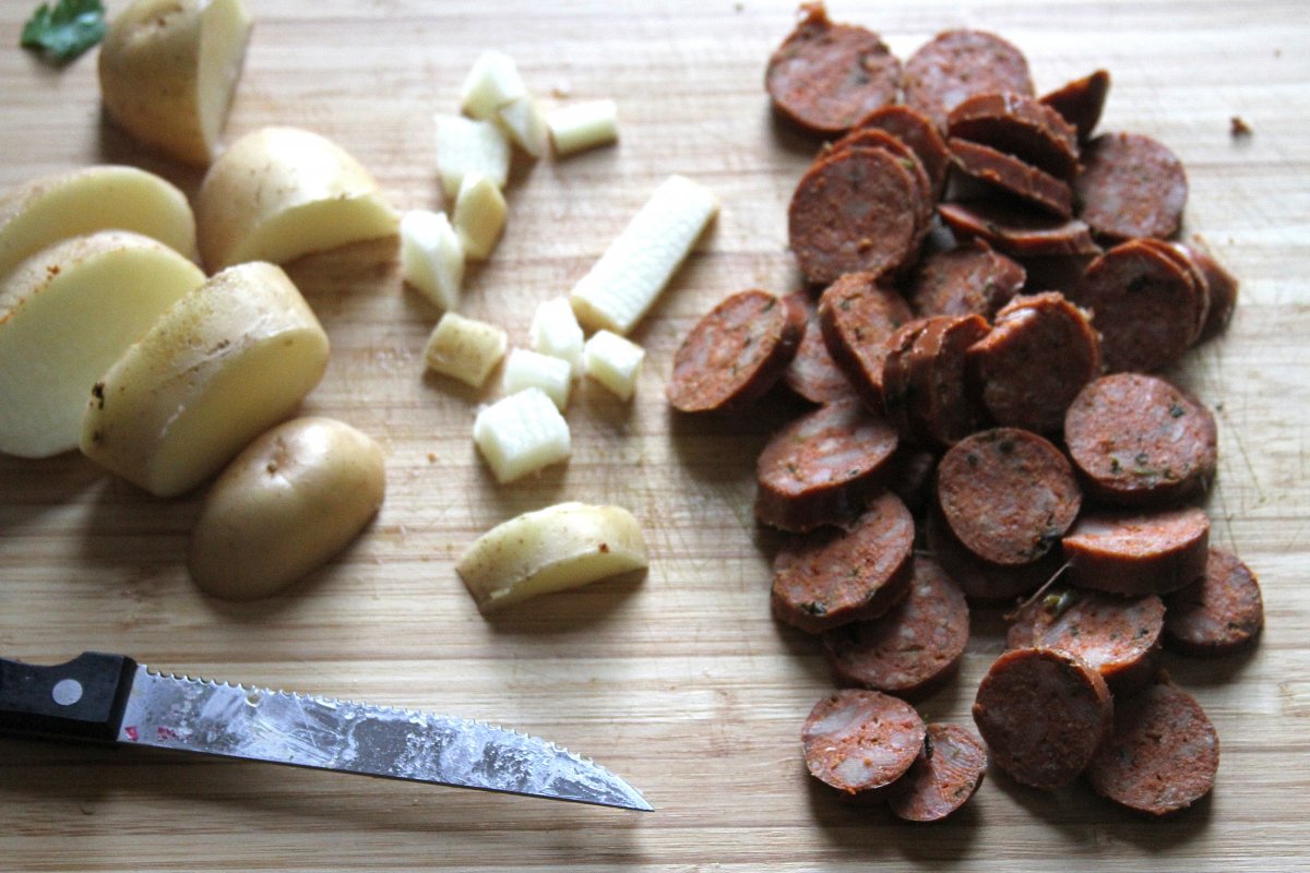 4 chorizo links, sliced