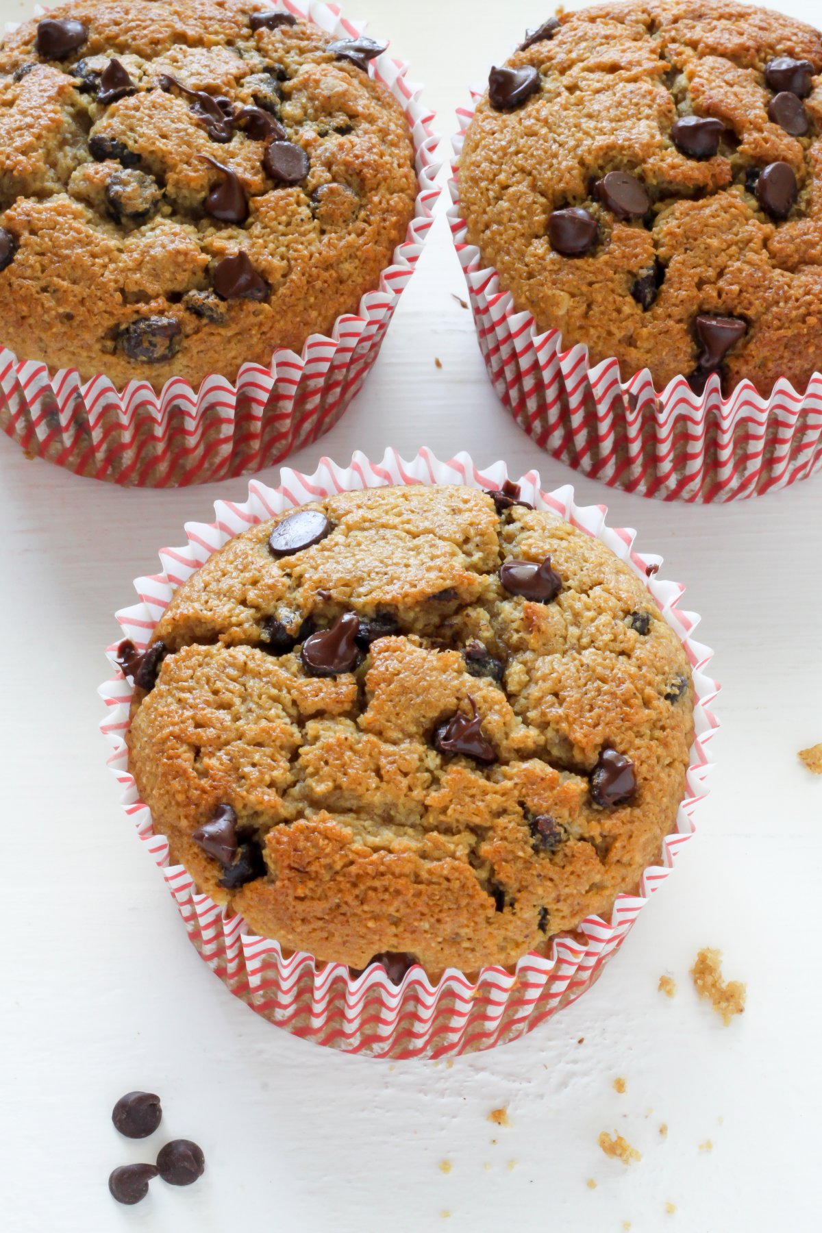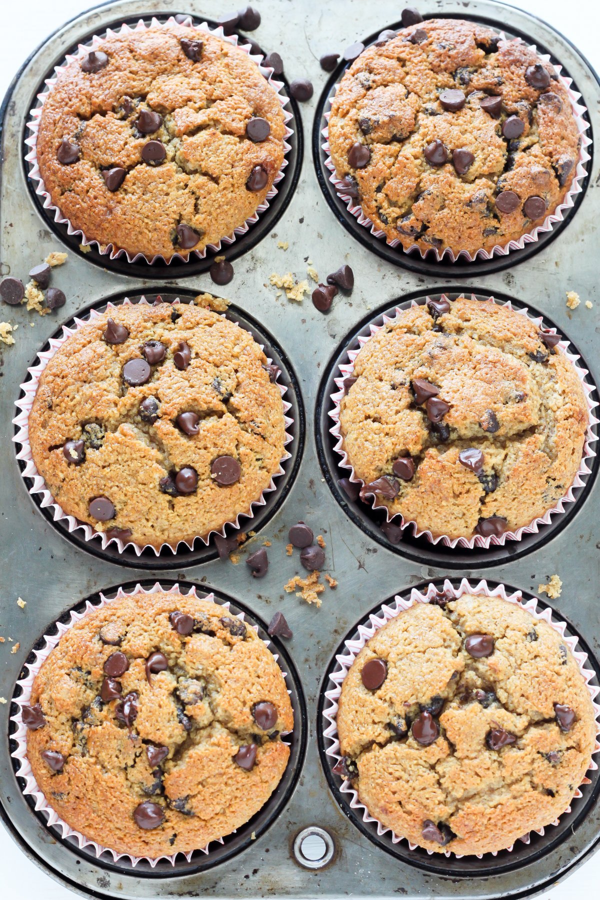 These incredibly delicious chocolate chip muffins bake up soft and fluffy – and with no butter, sugar, or gluten in the recipe – they’re healthy enough as an everyday snack. They taste even better than the muffins you’d grab at the bakery!