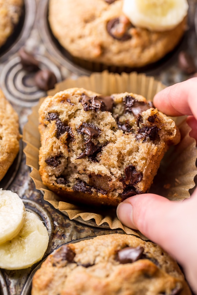 I wouldn’t claim these muffins to be health food, but they contain healthier ingredients that I feel good about. Plus, chocolate chips… because chocolate makes everything better, right? RIGHT ↓