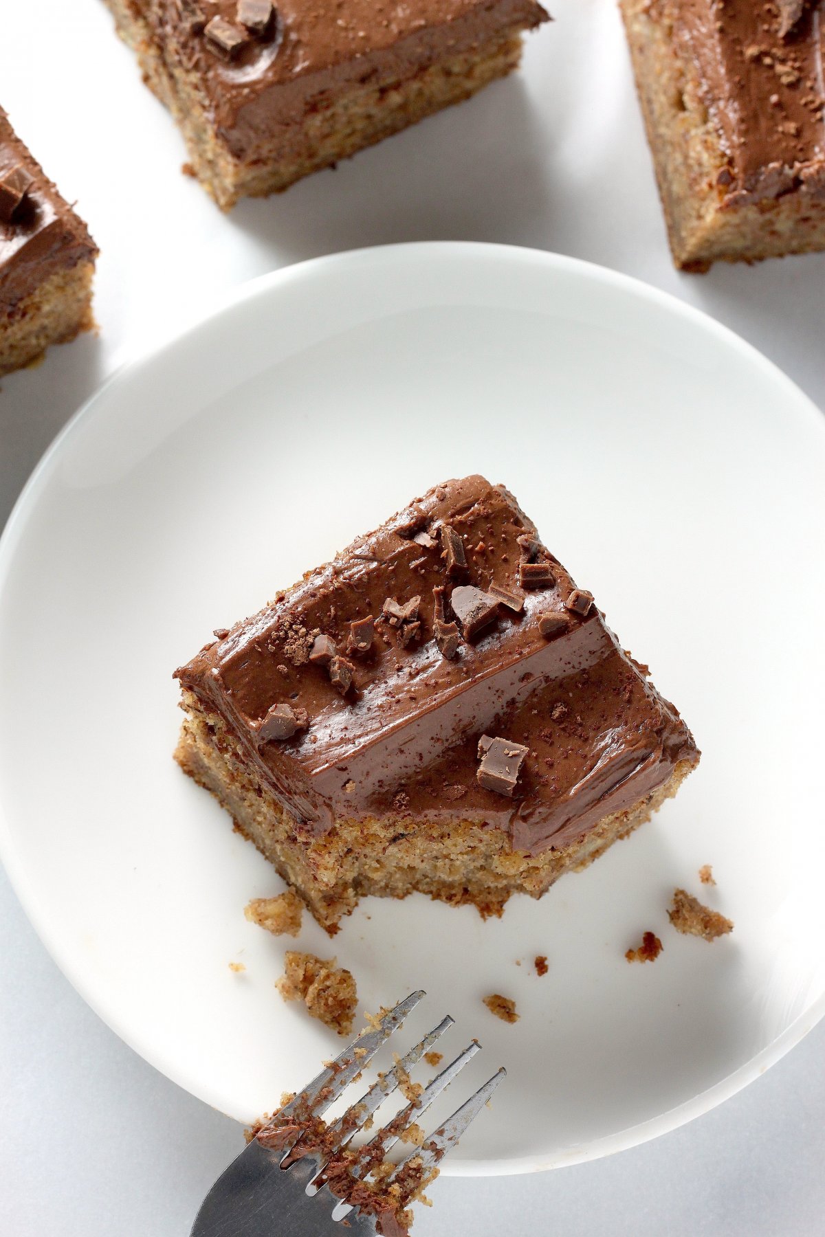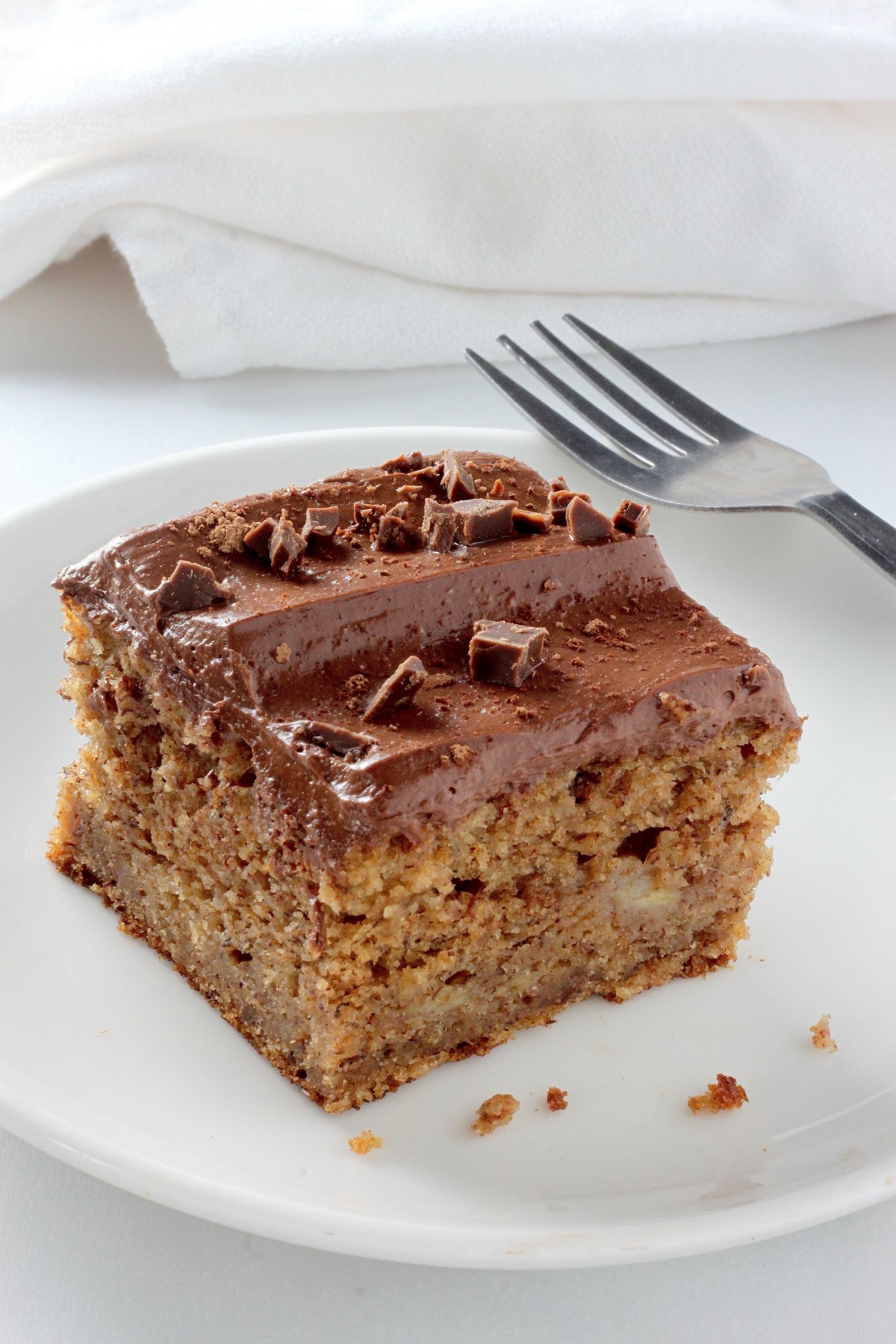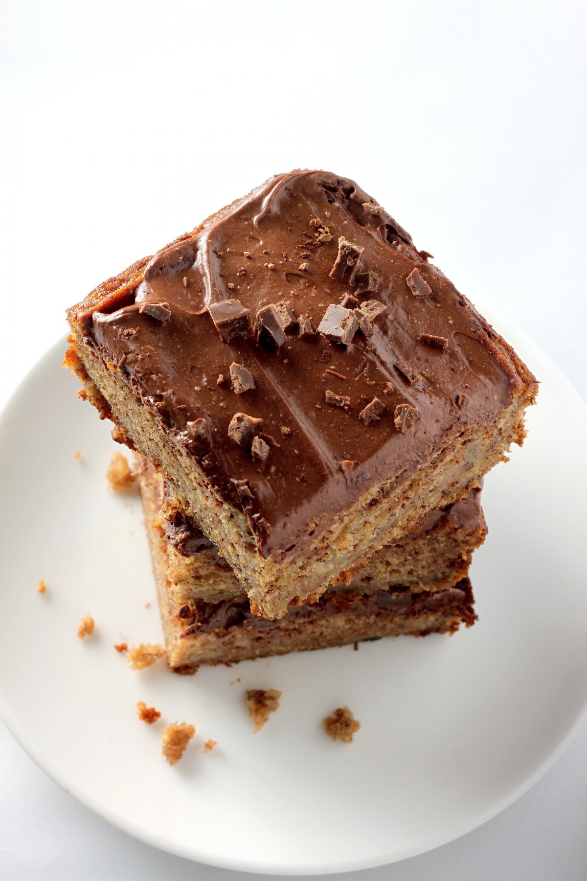 Last week I found myself bug-eyed and awake at the utterly unholy hour of 4 am. I stared at the ceiling, counted sheep, and tried thinking happy thoughts – only to come to the conclusion that I could-not-fall-back-asleep. Does this ever happen to you? It’s kind of the worst. But I’m an eternal optimist and decided to take my lemons and make lemonade. Or, more to the point, get my butt out of bed, take some mushy bananas, and make banana cake. With chocolate frosting, of course. Because anything done before 5 am deserves chocolate. At least that’s the law in these parts.