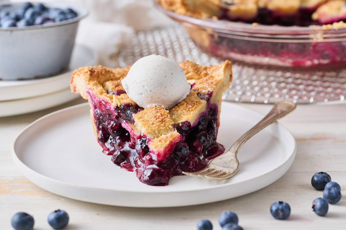 Bust out your pie pan and pastry blender, because I’m teaching you how to make blueberry pie! You can use fresh blueberries or frozen blueberries for the blueberry pie filling, so you can enjoy this pie anytime of year. Bake until the crust is golden brown and the blueberry filling is bubbling… then cool to room temperature, top with ice cream, and enjoy!