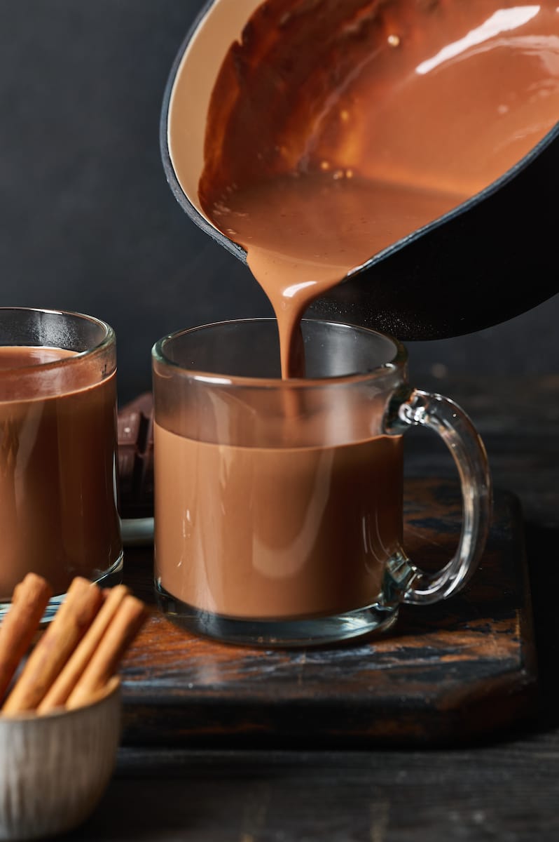 The ration of chocolate to milk can make or break a hot cocoa recipe! I use TONS of chopped chocolate in this recipe to ensure it’s ultra thick, rich, and creamy.