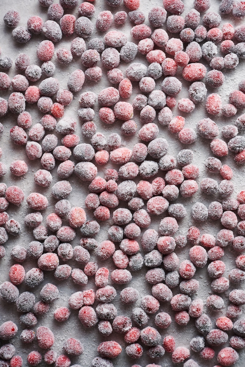 It’s no secret I love baking with fresh cranberries… I love their bright color, tangy tart taste, and the fact that almost any cranberry recipe is basically begging to be escorted with sparkly sugared cranberries! So today I’m teaching you how to make sugared cranberries. It’s super easy and there’s endless ways to use these sparkling cranberry jewels!