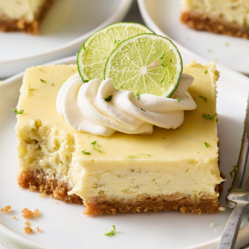 Wow. These are amazing. Made exactly as written except baked for 45 min instead of 38-40 (used a glass pan though).They don’t have many reviews and was a bit hesitant to make, but baker by nature always comes through for me with the fabulous tasty treats. If you are a key lime/cheesecake fan – must try!.