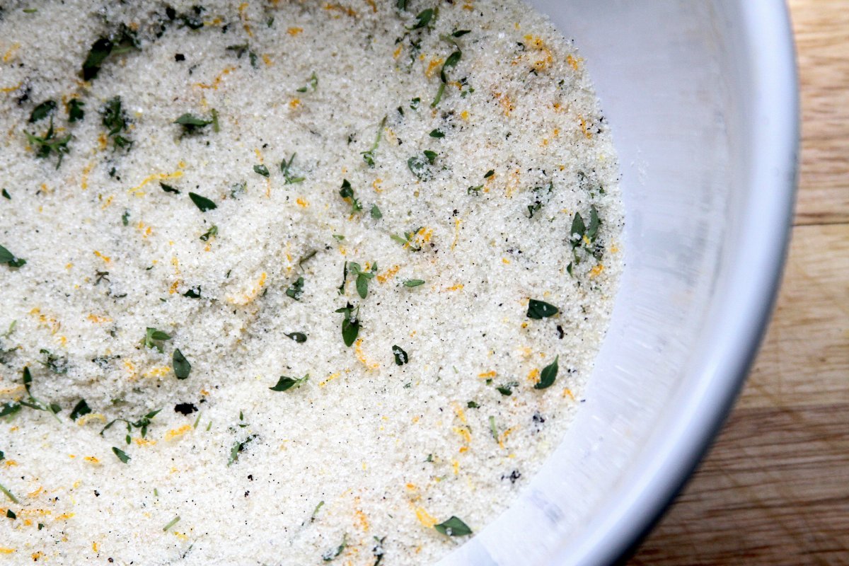 Look at that lemon, thyme, vanilla bean sugar. Magical stuff happening in that bowl. Magical stuff, I tell ya.