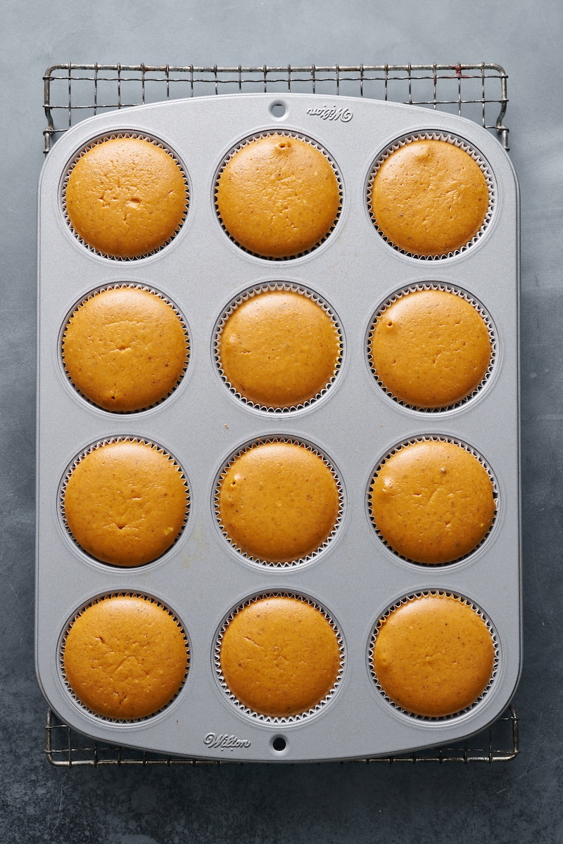- Preheat the oven to 350 degrees (F). Line a 12-cup muffin tin with paper liners. Lightly spray the liners with nonstick baking spray, set aside until needed.