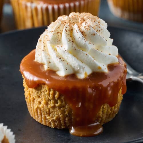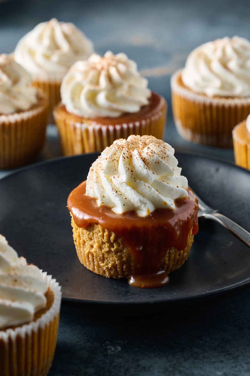 It’s no secret the only thing I love more than cheesecake is a mini cheesecake situation! They’re so cute, so creamy, and so much easier than baking a whole cheesecake. That’s because they’re baked in a muffin pan, and don’t require the fuss of a water bath, or an overnight chilling session.