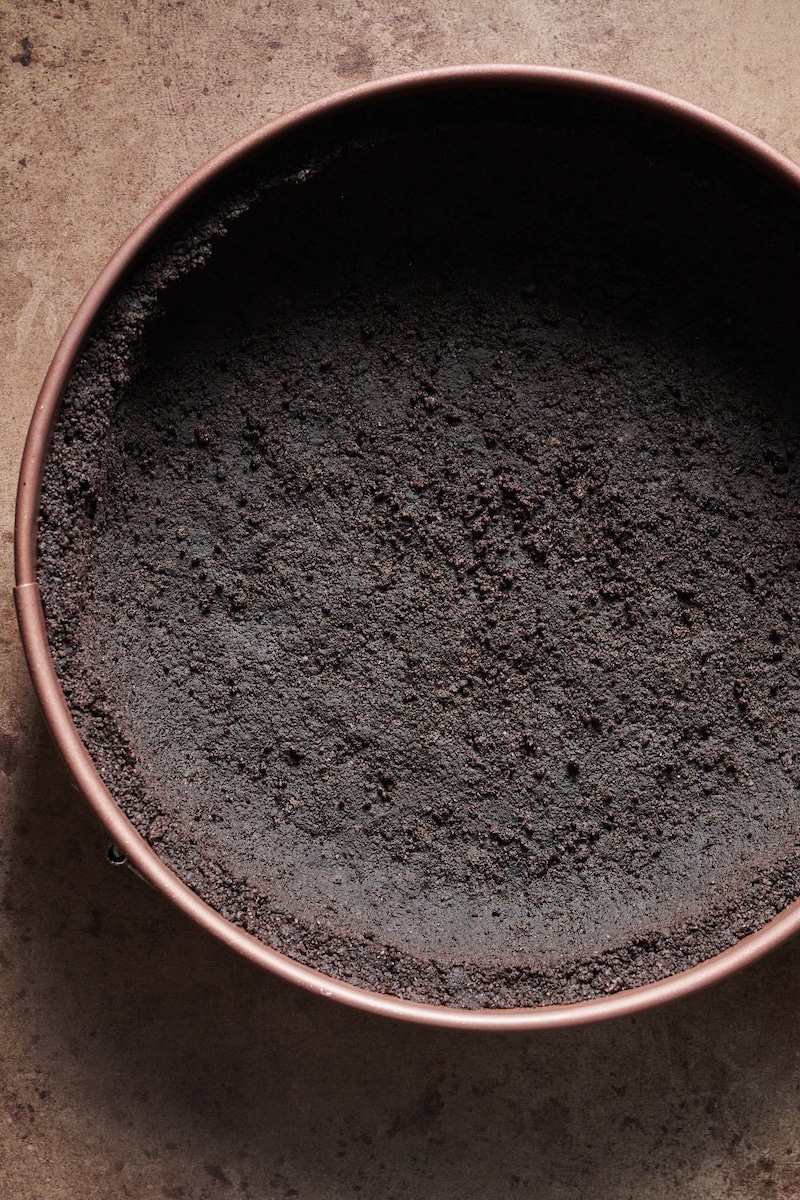 - When pressing the Oreo cookie crust down into the bottom of the springform pan, press it down firmly. A firmly packed crust will bake up nice and thick, and most importantly, won’t crumble too much when sliced.