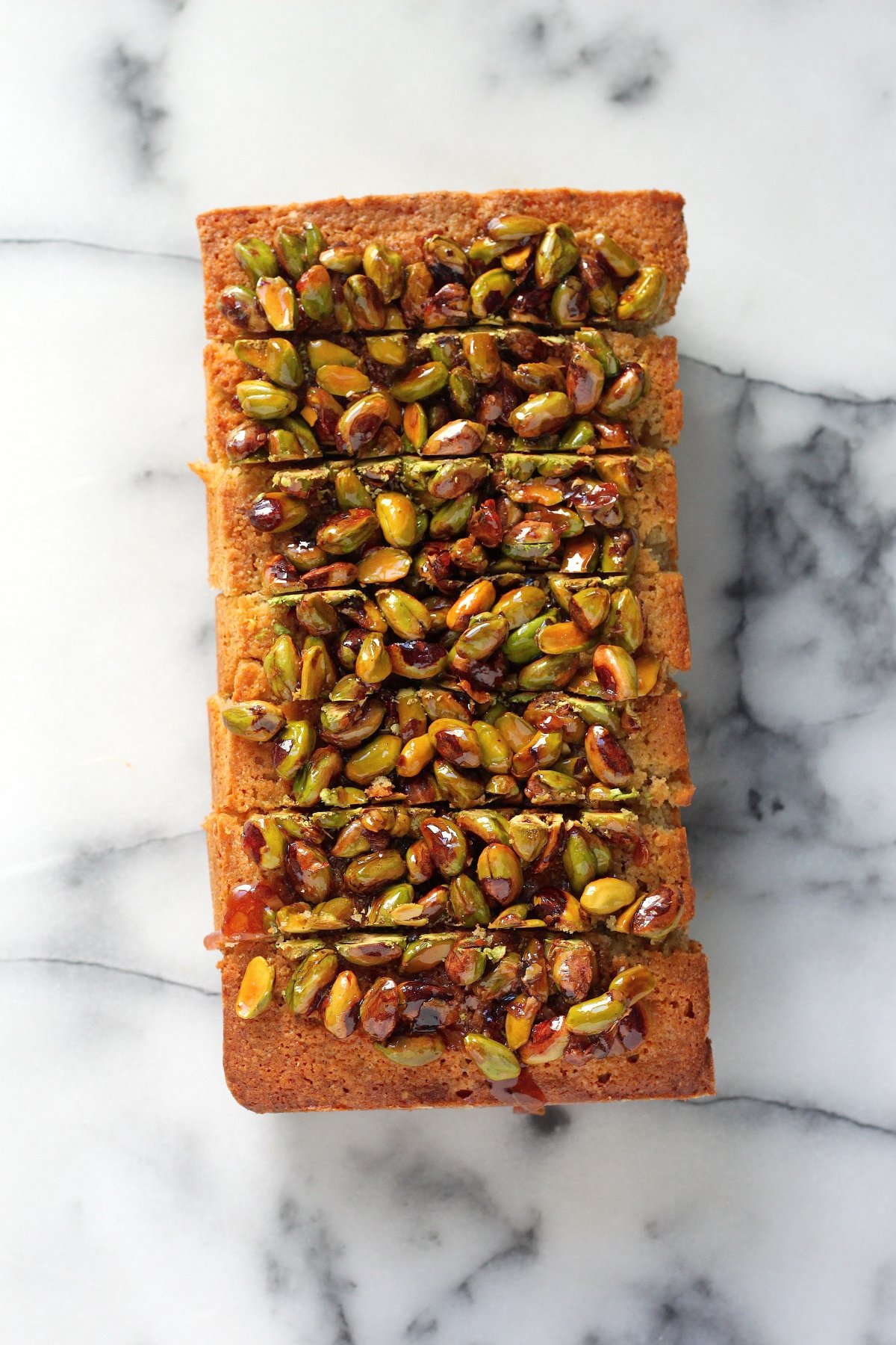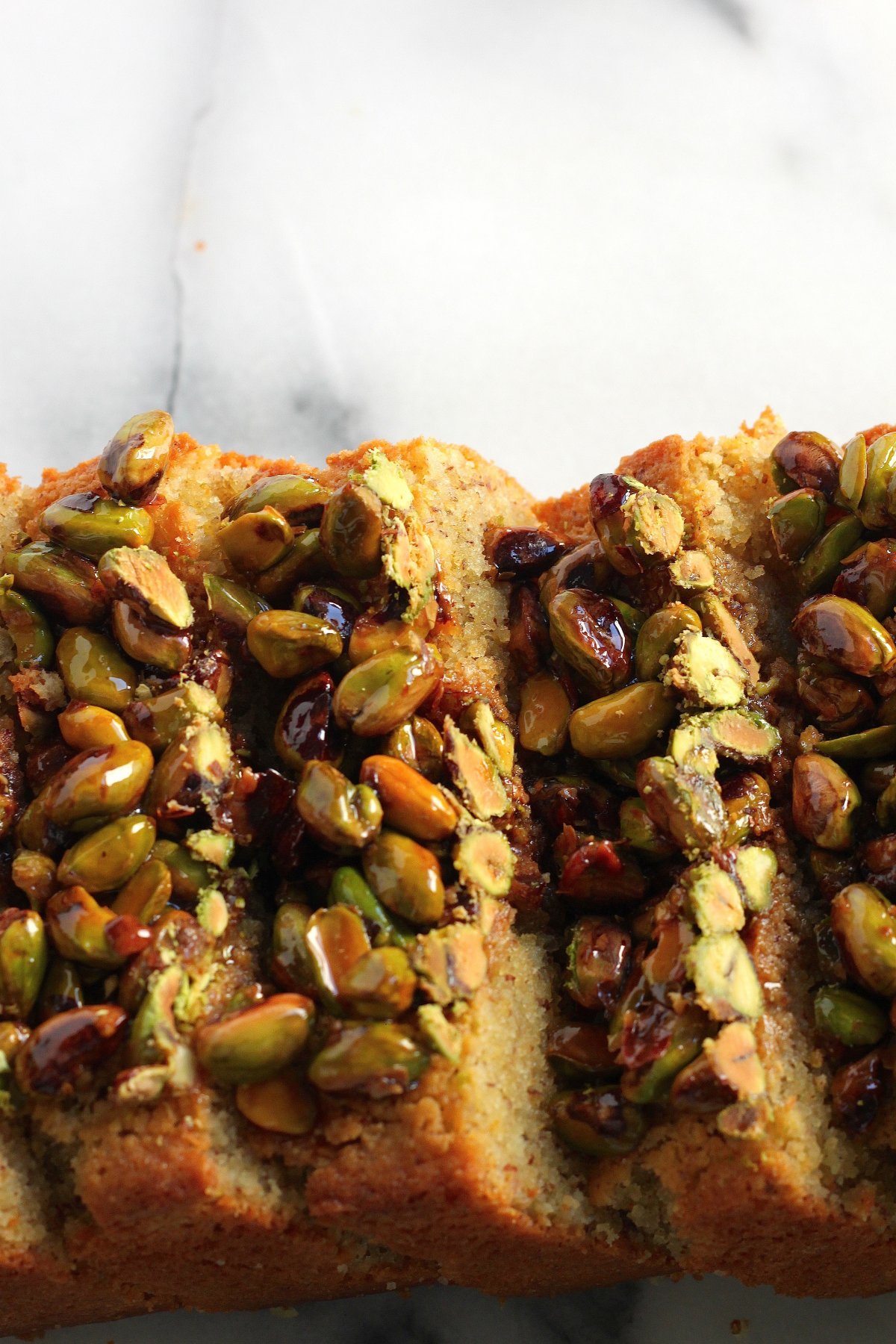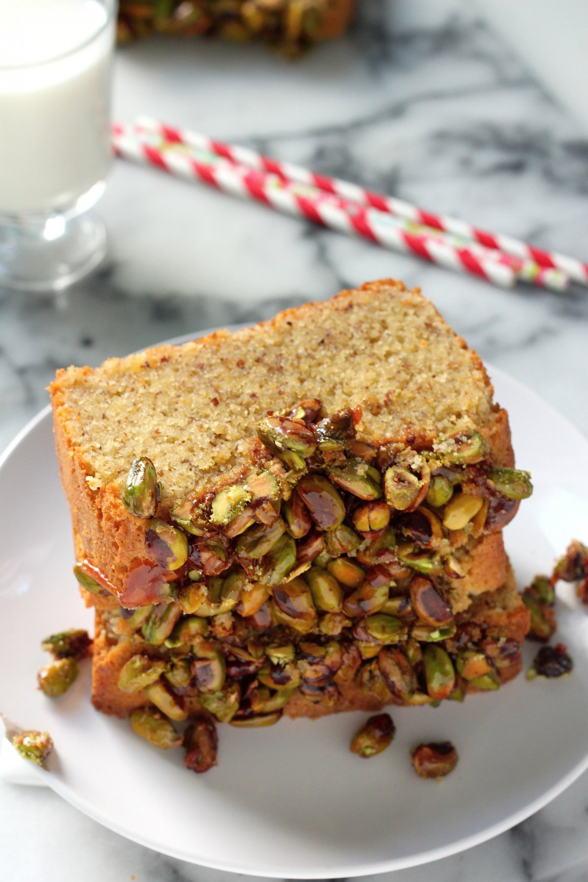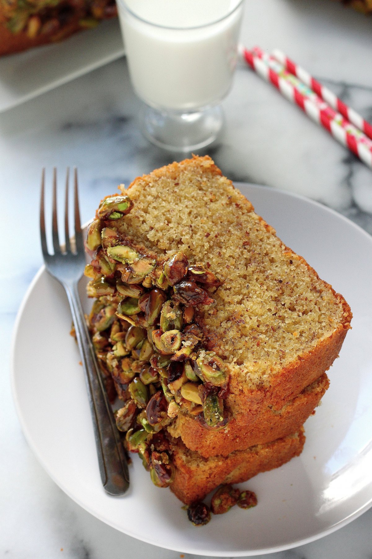 I had a craving. All last week, in fact. For a velvety slice of rich buttery pound cake topped with the most generously green robe of candied pistachios one could ever dream of. Simple, down-to-earth, and not overcomplicated. The way I’m trying to live each day of this life I’m so blessed with. Which leads me to a question! Why is overcomplicating things SO damn easy? I find myself doing it on the constant. Hand to forehead!