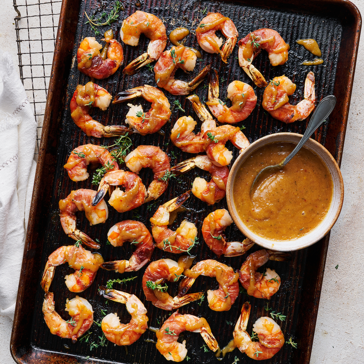 Prosciutto Wrapped Shrimp with Bourbon Honey Mustard Sauce