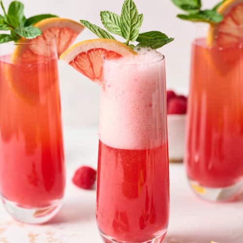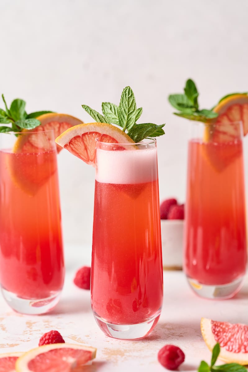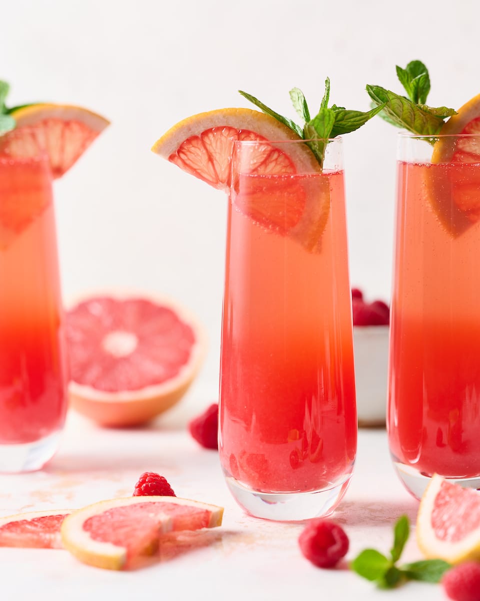 Raspberry grapefruit mimosas are fresh, fruity, and the perfect festive cocktail for almost any party! A fun spin on the traditional orange juice mimosa. Bust out the champagne flutes and make these today!