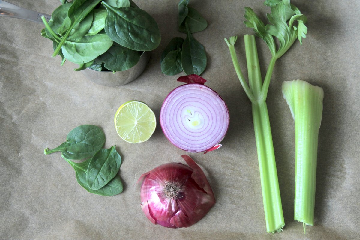 In a large bowl, combine the sweet potato puree with the remaining olive oil, maple syrup, chili powder, paprika, cayenne pepper, nutmeg, and almond flour. Lightly beat in egg white before folding in the lime juice, celery, red onion, and spinach. Mix well.