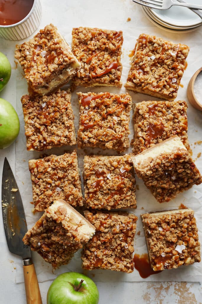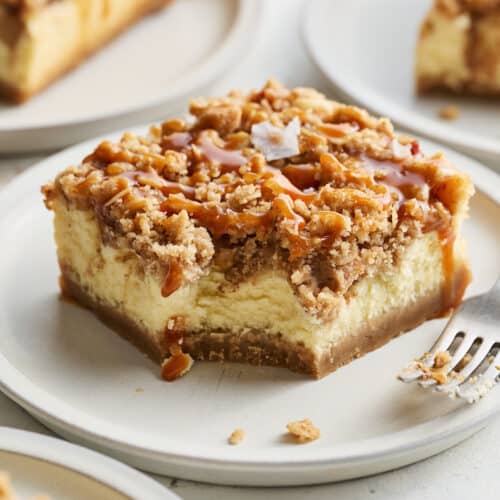 Oh my goodness, these look incredible! I love the combination of salted caramel and apple in a cheesecake bar. Can’t wait to try this recipe out!