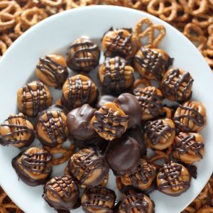 These salted caramel pretzel pecan bon bons are definitely going to be in high demand this year! Crunchy pretzels topped with soft, chewy caramel, salty pecans, and, if desired, a sprinkle of toasted coconut.