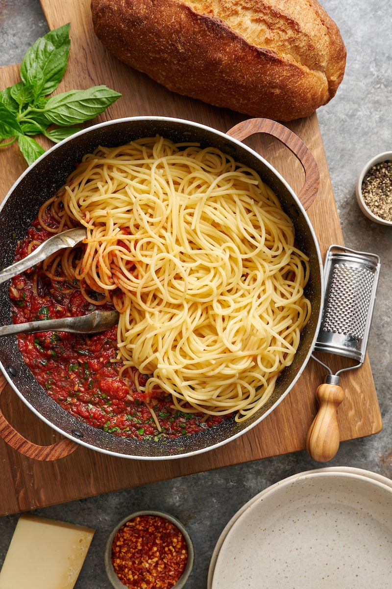 - Spaghetti Noodles: I use dried spaghetti, but fresh pasta will work! You can also use almost any variety of pasta noodle here, so don’t feel like you’re married to spaghetti.