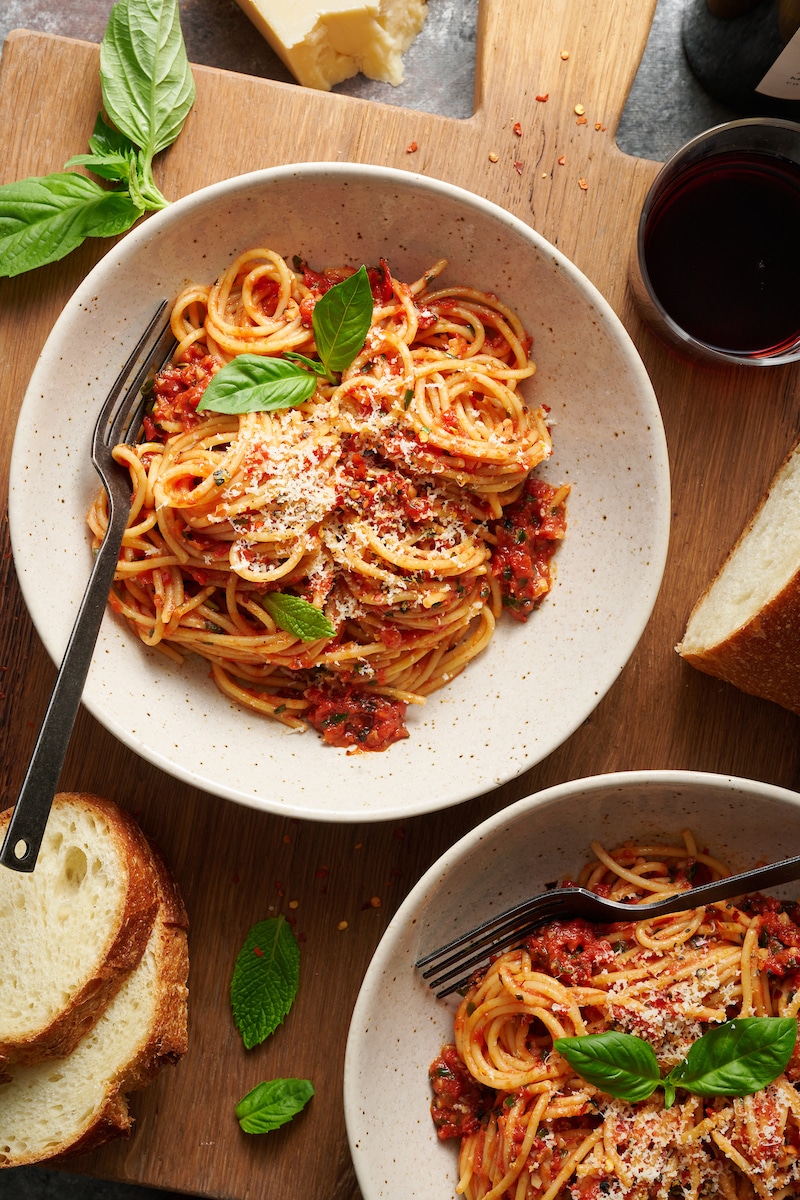 It’s no secret we love pasta! But this spicy spaghetti fra diavolo is one of the most made – and loved – pasta recipes in our household. Even my picky toddler happily slurps this down!