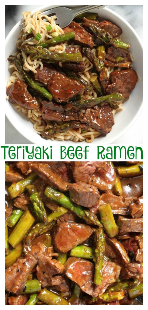 This Steak and Asparagus Teriyaki Ramen is so easy and flavorful! Way better than take-out, this Asian inspired steak and asparagus recipe is always a crowd-pleaser!
