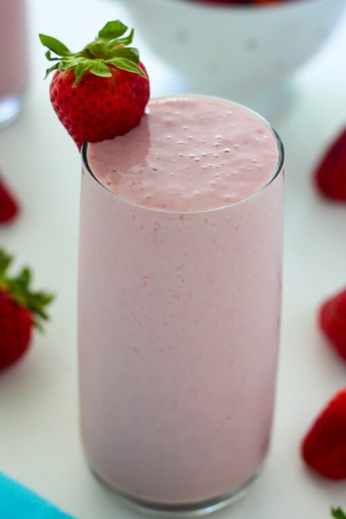 This mango strawberry smoothie recipe is made up of fresh fruity flavors, a kick of bright citrus, and not much else. Feel free to add a tablespoon of sugar or honey to the smoothie base, if you prefer a very sweet treat, or leave it as is for a naturally delicious drink.
