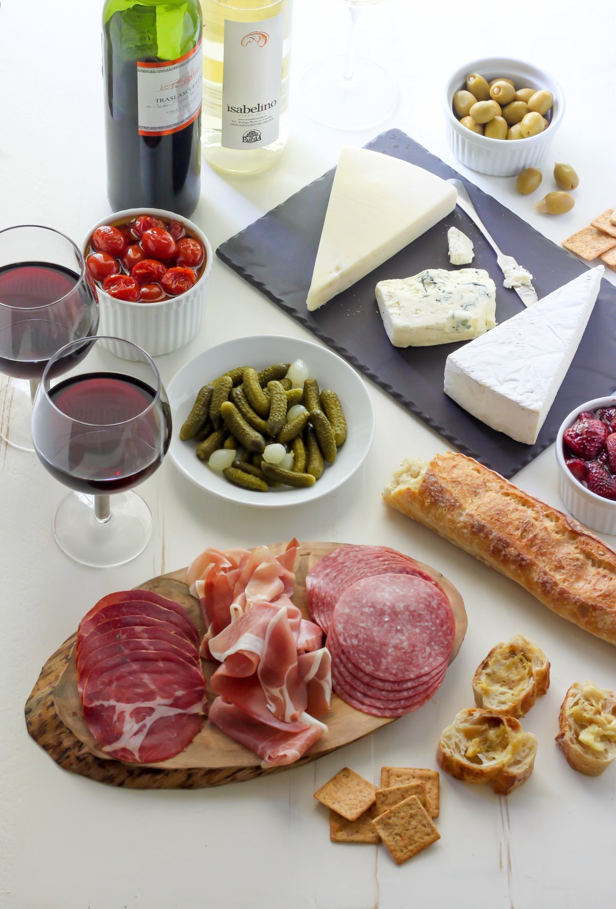 Today’s post is proudly brought to you by the kind folks over at Ribera y Rueda wines. They were sweet enough to send us two bottles of their delicious wine, and the minute I set eyes on the beautiful bottles, I knew they were destined to pair with meat and cheese. But I digress! Let’s talk a little more about THE WINE. For 2,000+ years, winemakers from Ribera and Rueda – located in northwest Spain and only about an hour away from Madrid – have cultivated what’s new and what’s next in every vineyard and vintage they produce. Rueda Verdejos (white grape varietal) are bright, crisp and creative. It’s also perfectly refreshing on a HOT Summer evening! Ribera del Duero Tempranillos (red grape varietal) are bold, rugged and ripe. I drink red wine year round and loved this variety with steak right off the grill ♡♡♡.