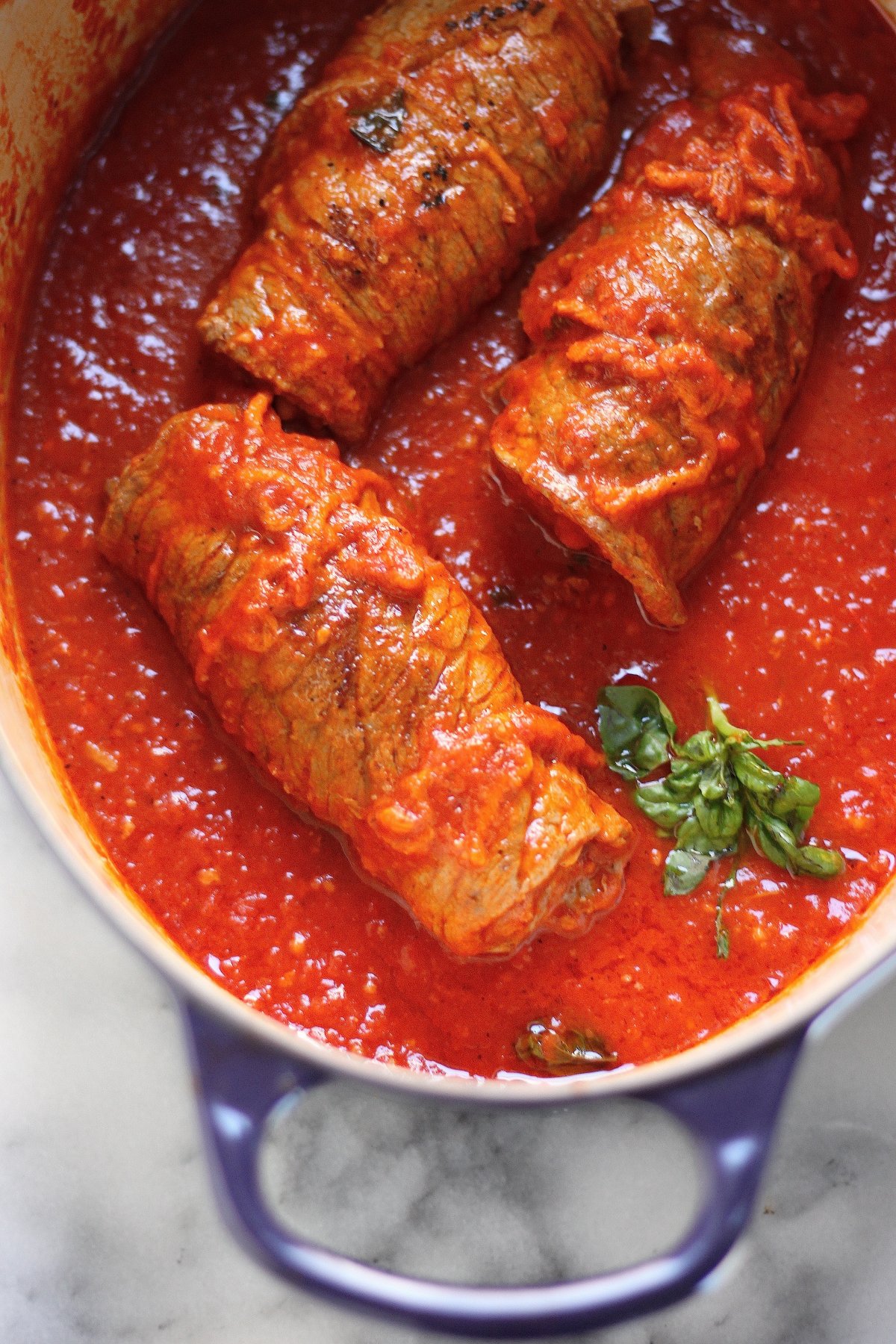 Ok. So maybe this is actually the hardest part?! Waiting for 4 hours is hard. But so, so worth it, friends. This is where the braciole soaks up so much flavor and moisture and leaves you with a dish you’ll want to make over and over and over again.