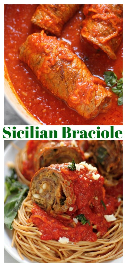Today we have a classic Sicilian dish, and Sunday staple over here in our house – braciole. I mean… Authentic Sicilian BRACIOLE! Just typing that word gets me all excited. Are you familiar with this amazing meal? If not, here’s a quick what’s what on the dish.