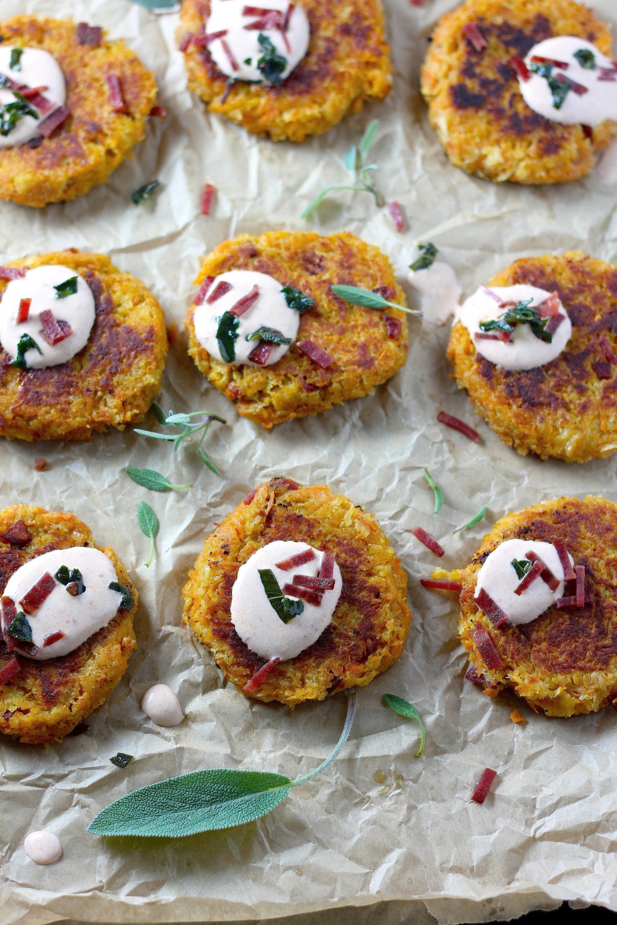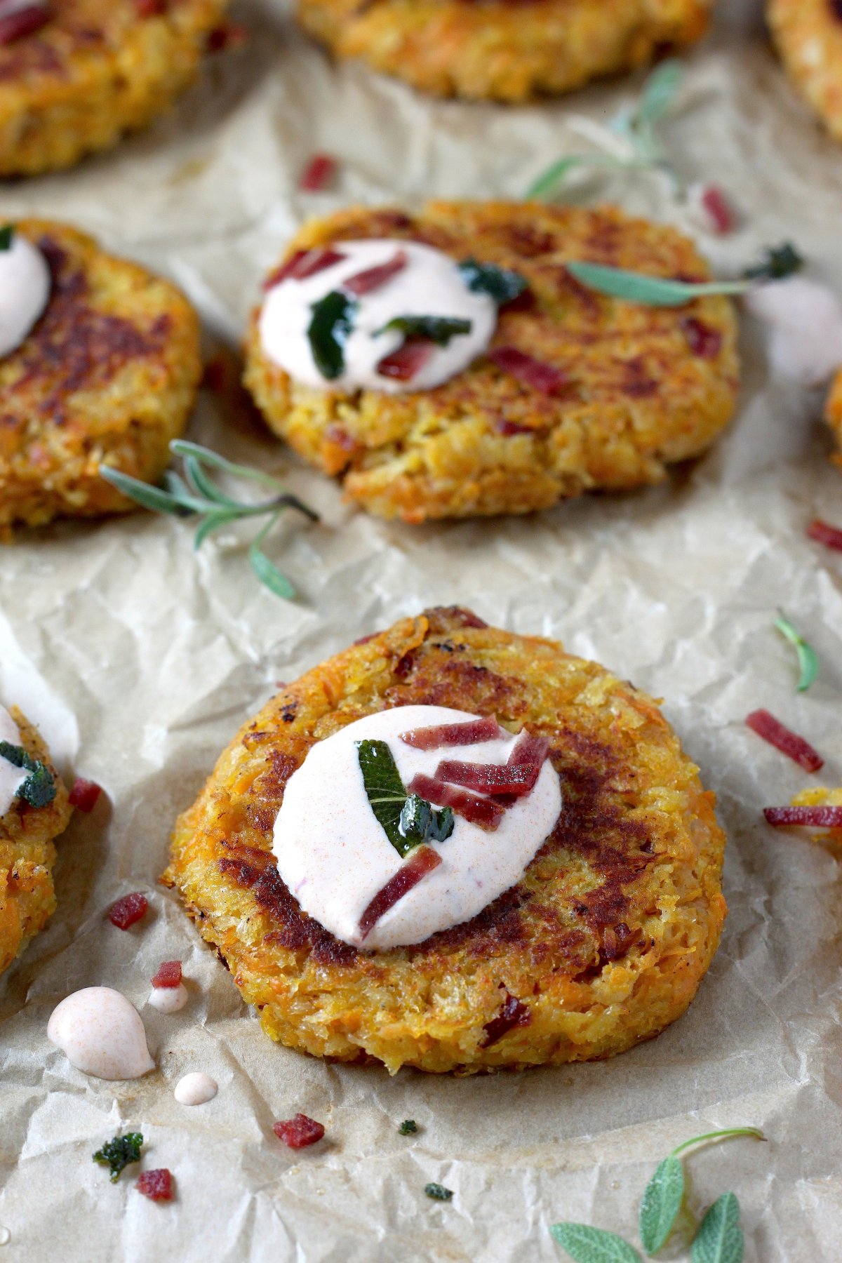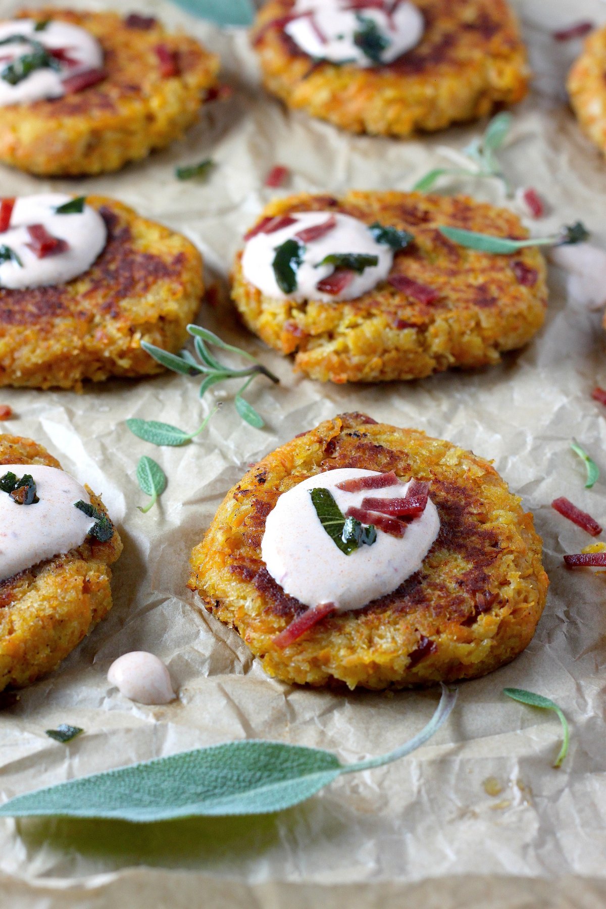 This version is like Fall and Winter had a baby and it came out a fritter. I’m so weird. I know… But these fritters are NOT. They’re all shredded sweet potato… and apple… and sage… FRIED! Then their crispy little bodies get a dollop of smokey chipotle aioli and you bite into it and you’re like “is there anything better in this world than the fritter I hold in my fingertips?!”
