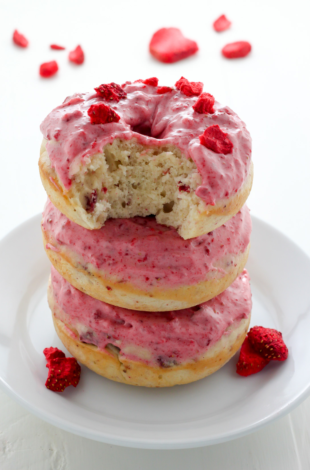 Strawberries and Cream Donuts are sweet, fluffy, and perfect for Summer! Bonus: They bake up in just 10 minutes.