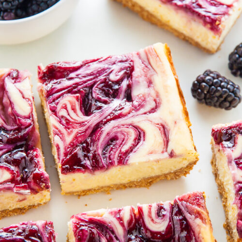 Fresh and Fruity Blackberry Cheesecake Bars! Creamy and rich, these taste just as good as regular cheesecake but MUCH easier to make.
