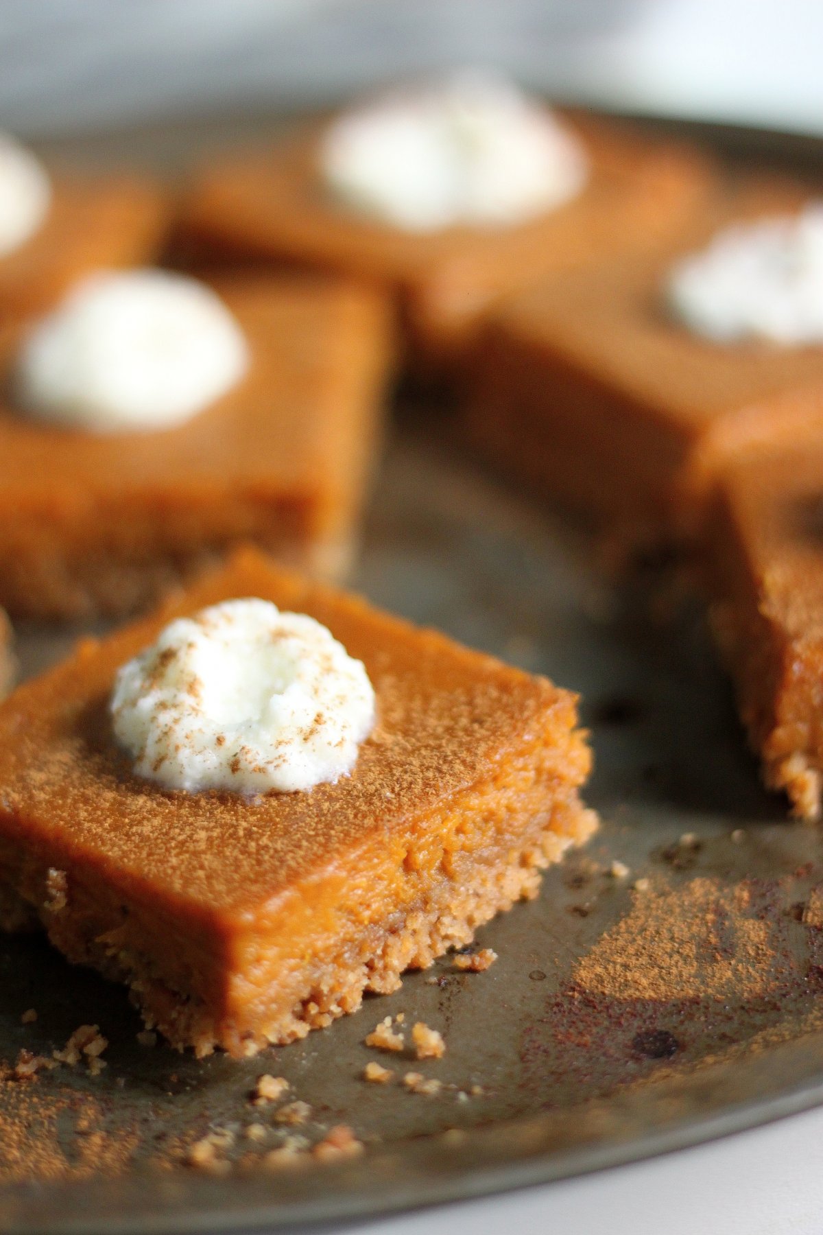 Silky Brown Butter Pumpkin Pie Bars with Brown Butter Pretzel Crust and Bourbon Whipped Cream