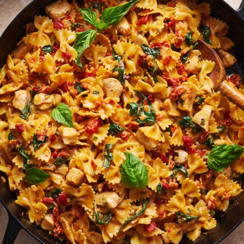 Winner winner, chicken (and pasta) dinner: this sun-dried tomato pasta is sure to elevate your next pasta night… and earn you a standing ovation! Featuring a creamy sauce packed with flavor thanks to minced garlic, crushed red pepper flakes, and sun-dried tomatoes. Chicken breast and spinach round out the sauce and make it a hearty…