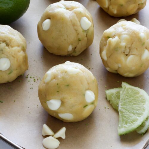 These White Chocolate Coconut Key Lime Cookies are thick, chewy, and full of flavor! No need to chill the cookie dough, simply roll and bake! Key Lime White Chocolate Cookies I do so enjoy the smell of sugar and butter. A fresh batch of cookies baking up in the oven… is there anything better? Watching…