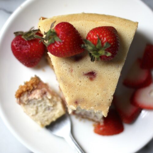 Roasted Strawberry Greek Yogurt Cheesecake