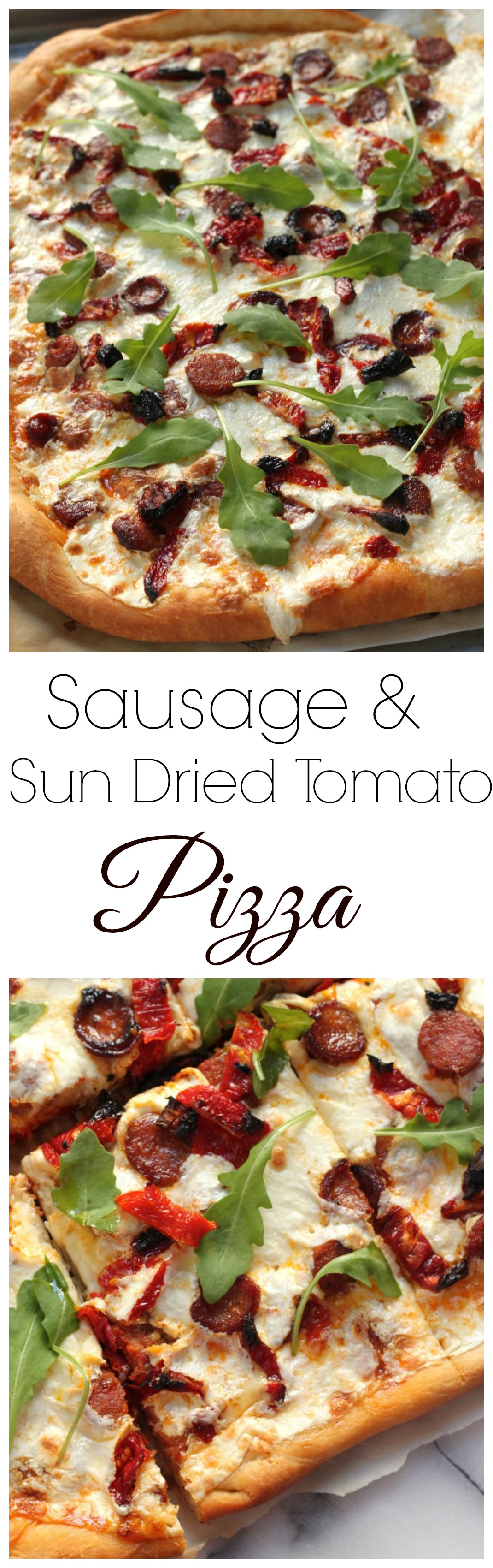 Happy Friday, friends! We did it!!! And to celebrate another week coming to an end, I made us a pizza. A giant pizza! Studded with spicy dots of sausage, vibrant sun dried tomatoes, and a fresh sprinkle of lovely arugula leaves. So much flavor… It’s delightful! I used plain old pizza sauce and mozzarella as the…