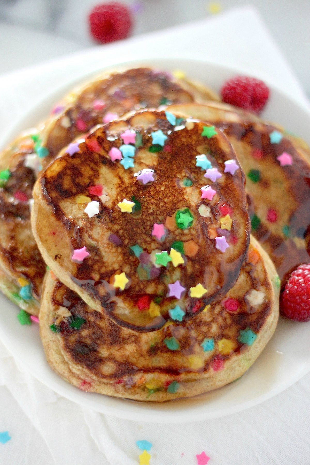 Happy Sunday everyone! It feels like forever and a day since we’ve done brunch around here, so today I’m excited to be bringing pancakes to the table! And guess what >>> these are not just any pancakes. No no. These are Healthy Greek Yogurt Confetti Pancakes!!! Made with whole wheat flour, protein packed Greek yogurt, and a handful…