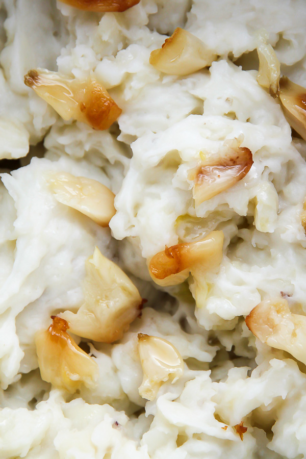 The fluffiest mashed potatoes made with roasted garlic and caramelized onions.