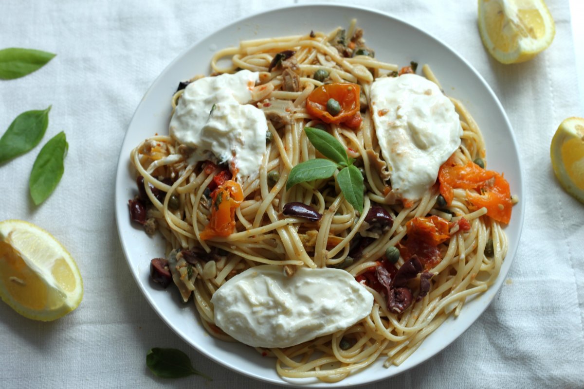 Continue ReadingLinguini Clam Puttanesca with Burrata and Basil