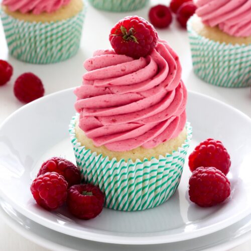 Your taste buds are going to go crazy over this one —–> Soft and Fluffy Lemon Cupcakes topped with homemade Raspberry Buttercream. Dessert doesn’t get much better than this!