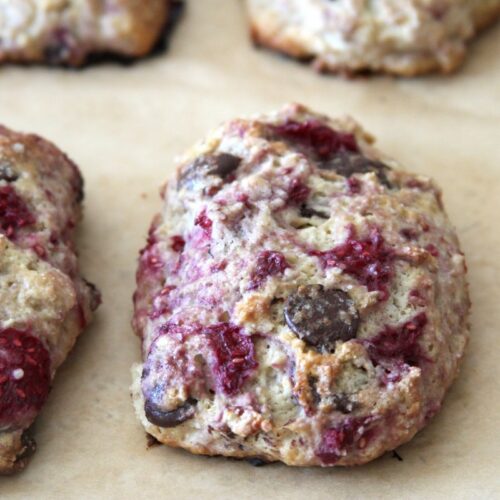 Scones always make a breakfast table a little happier. These scones scream Summer with a burst of bright raspberries, but also keep things decadent with giant chunks of dark chocolate. Fresh berries + chocolate = love. It’s a fact! I baked these sweet scones up for a quick breakfast before we hit the beach last…