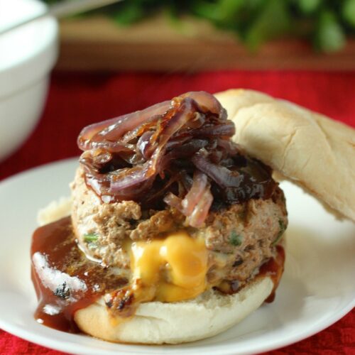 Cheddar Stuffed BBQ Turkey Burgers