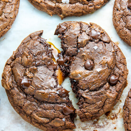 Soft Batch Salted Caramel Chocolate Fudge Cookies