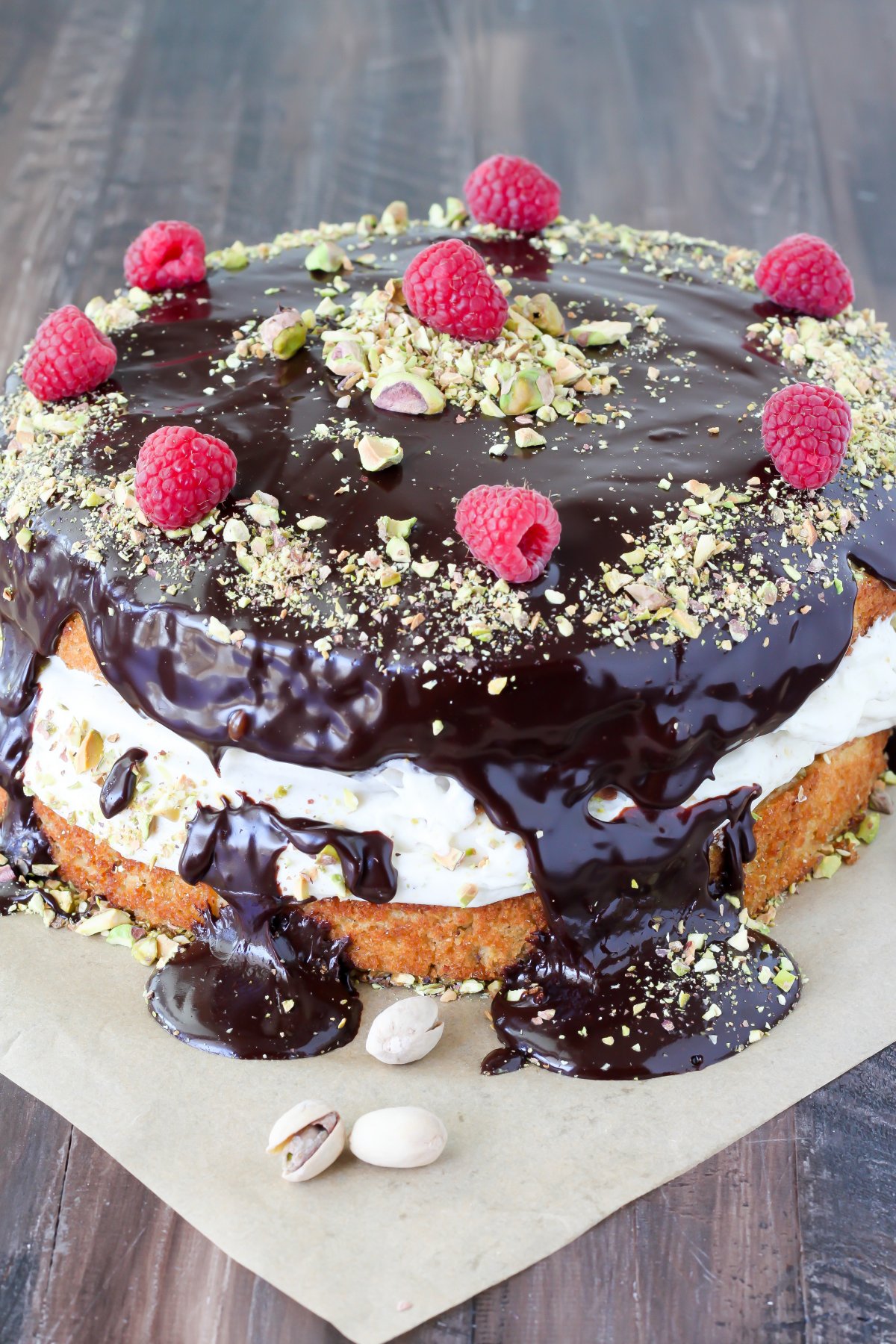 Pistachio Cake Welcome to another day of giveaways, my friends! Today I’m sharing with you this gorgeous recipe for Pistachio Cream Cake with Chocolate Ganache. It’s from Jessica Merchant’s new cookbook SERIOUSLY DELISH…