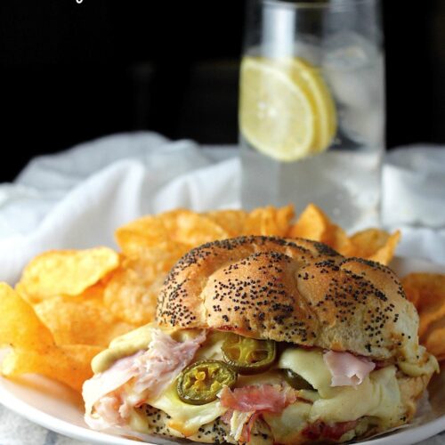 What a beautiful sight. Hot ham, gooey melted swiss, spicy jalapeños, and a delicate swirl of dijon, all enveloped in a crusty poppyseed bun. Does this Hot Ham, Swiss, and Jalapeño melt tickle your sandwich soft spot or what?