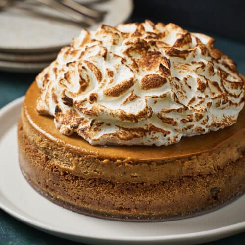 If you like sweet potato pie, you have to try this brown sugar sweet potato cheesecake! Made with sweet potato puree, brown sugar, and plenty of spices, the creamy cheesecake filling packs a ton of flavor. And the crunchy graham cracker crust is the perfect contrast to the silky smooth meringue topping. Sweet Potato Pie…