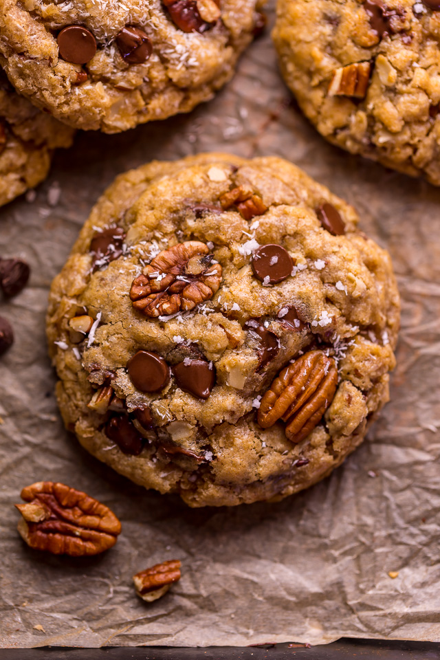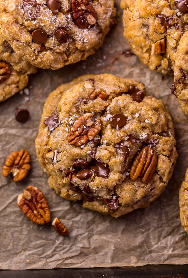 Recently, I discovered cowboy cookies and they changed my life. They’re essentially oatmeal chocolate chip cookies loaded with coconut, pecans, and coconut. Here’s why my version is the best: