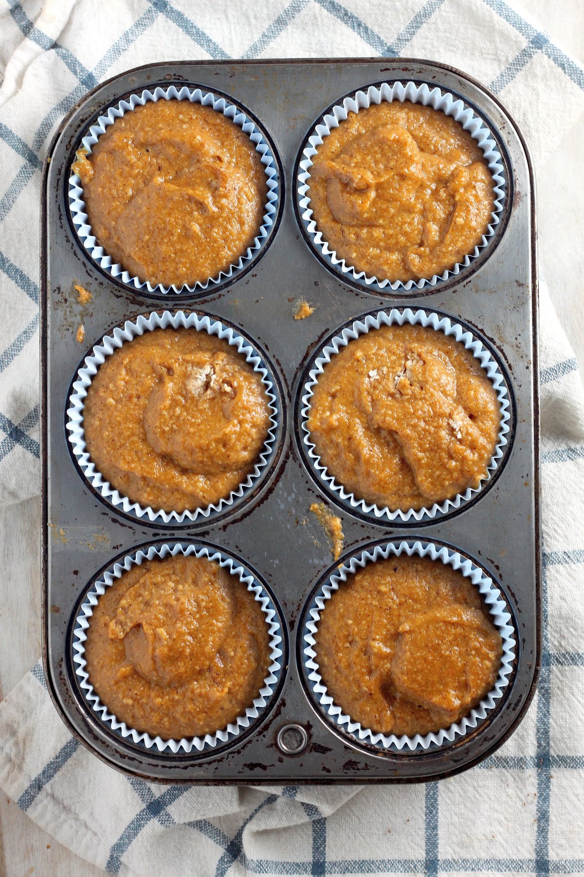 - Preheat oven to 350 degrees (F). Line a 12-tin muffin mold with paper liners or spray each mold with non-stick spray. Set aside.